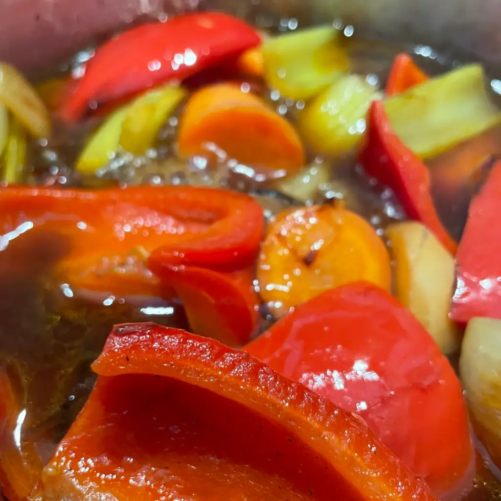 Brun dine grøntsager af ovn eller gryde. Tilsæt vand og eddike og kog/damp under låg til grøntsagerne er møre. Blend sammen til konsistensen er rigtig (ca. ketchup) og ensartet. Smag til med det du synes der mangler.