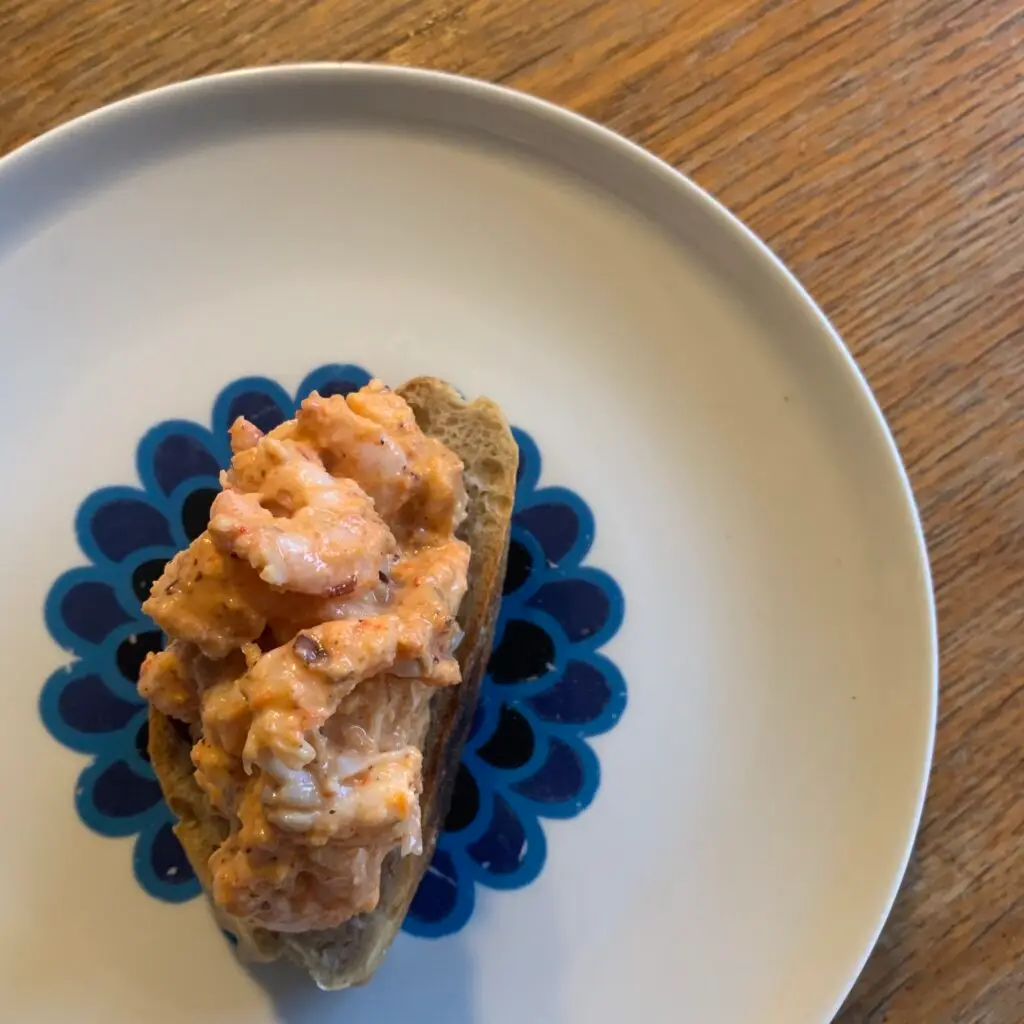 Dræn dine rejer i en sigte – gerne natten over i køleskabet. Grill din hele peberfrugt i ovn ved 250 grader eller på grillen med direkte varme – skallen skal være sort og kødet skal være blødt. Det tager ca. 20 min i en ovn. Hasselnødderne kan ristes i ovnen (evt sammen med peberfrugten) eller på en pande. Hasselnødderne skal have, til selve nødden tager en let gylden farve og begynder at dufte af ristede nødder – det er den duft, der også kan smages i den endelige dip, så det er vigtigt, at du ikke stopper for tidligt – hellere en sort plet her og der end ingen smag af ristede nødder. Pil eller pres dit hvidløg. Når din peberfrugt er blevet så kold, at du kan røre ved den, så befrier du kødet fra skindet og alle de kerner, der nemt kommer af – det gør ikke noget, at der sidder lidt tilbage her og der. Hasselnødderne trilles mellem fingrene, så den brændte hinde drysser af – så godt som muligt. Nu skal peberfrugt, hvidløg, hasselnødder og hvidvinseddike op i en foodprocessor (eller en skål og klares med en stavblender) og blendes til en ensartet masse, uden at knaset fra nødderne forsvinder helt. Her kan du smage til, med det du tænker, der mangler og stoppe, inden du kommer majonæse i – men det er altså en lækker tilføjelse at komme lidt hjemmelavet majonæse ned i din romesco-masse og røre rundt. Nu tilsætter du dine drænede rejer, vender det hele sammen, smager til og så er der serveret – til hverdag og fest!
